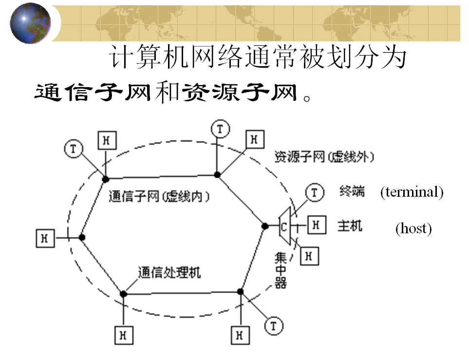 计算机网络通常被划分为通信子网和资源子网。通信子网提供信息传输,资源子网提高共享资源。