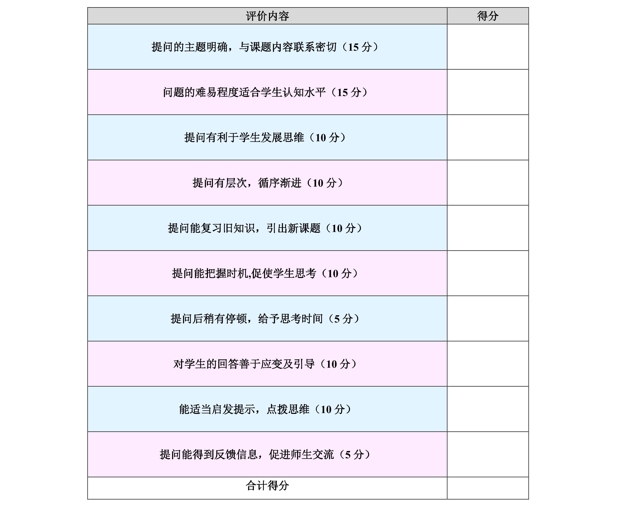 (5)讲课结束后,小组成员逐一点评,并提出完善意见,填写个人教学评价表。