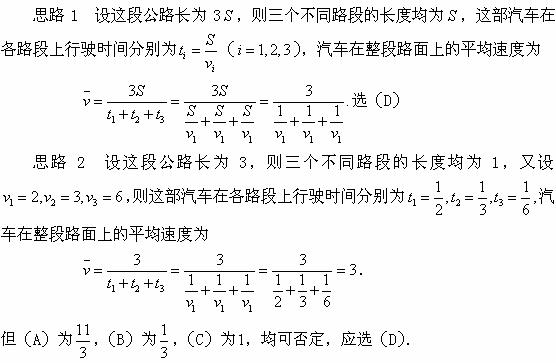 例8某公路由上坡、平路、下坡三个等长的路段组成,已知一汽车在各路段上行驶的平均速度分别为![]()