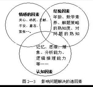 (1)经验因素,包括解题者的个人特征和问题的情境要素。如知识结构、关于解题策略的熟悉程度、问题的陈述方式等。