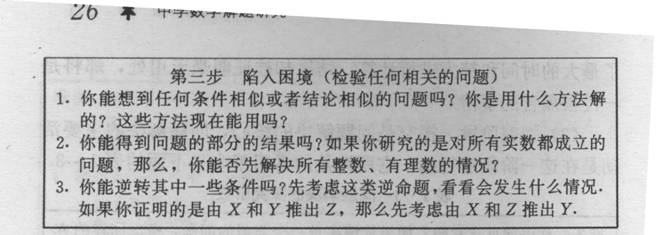 你能否检验这个论证?你能否用别的方法导出这个结果?你能不能一下子看出它来?你能否把结果或方法用于其他的问题?