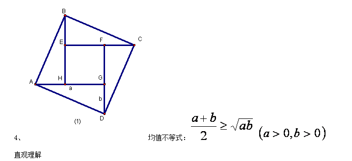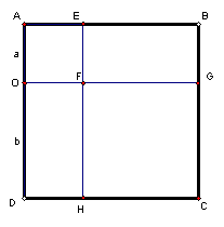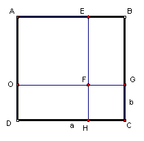 对于代数式(1), 如图所示,正方形ABCD,其中AO=a,OD=b, 正方形ABCD的面积等于正方形AEFO、正方形FGHC、矩形EBGF与矩形FHDO的面积和,即
