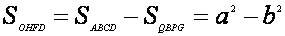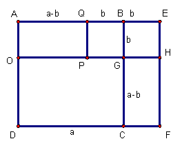 如图所示,矩形AEFD,AD=CD=a,BE=BG=BQ=b,则易得正方形ABCD与正方形QBPG的面积之差等于矩形OHFD的面积,即