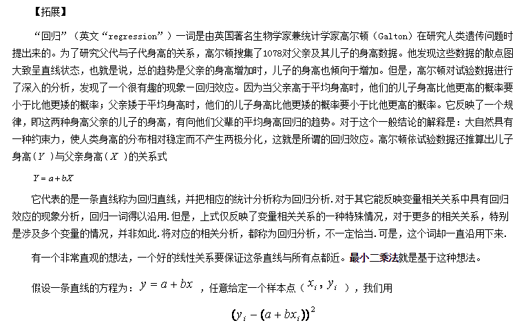 通过收集现实问题中有关变量的数据,认识变量之间的相互关系,描述两个变量的线性相关过程,建立线性回归模型,这是中学课程对统计思想的深刻理解,而建立模型的关键是在两个变量之间建立对应关系,从而使变量定量化.