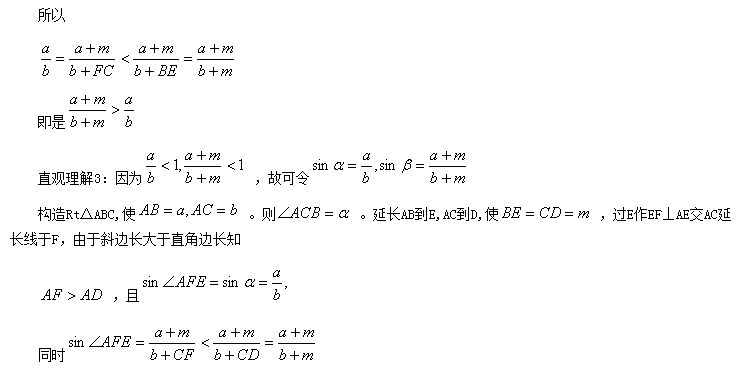 所以ab+bm>ab+am,两边同时除以b(b+m)