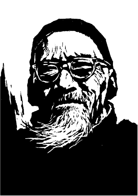 张怀江(1922—1989),著名版画家。此副木刻版画作品《黄宾虹刻像》是晚期 代表作之一,这一创作时期是其木刻艺术生涯的巅峰期。作品主要体现在四个方面:一是技法,用刀奔放老辣,最能显示其苛求的刀木“拙、辣、方”之味;二是结构,造型简约精炼、黑白对比强烈,反映的是其版画“黑白”的追求;三是内容,贴近生活、富有浓烈的时代气息和地方特色,是其版画“尚实”“江南”主调的生动表征;四是境界,注入对人性、人生和社会的深沉思索,富于哲理性,有力践行了“以简言见深思,以自己的艺术偏爱去人化自然、刀传心声,去揭示生活的美”的艺术主张。