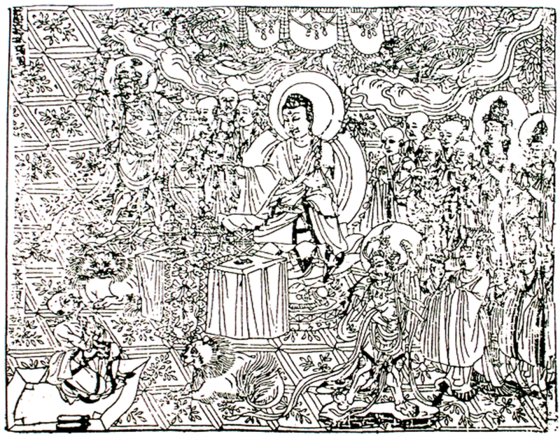 《祗树给孤独园》木板雕刻 金刚经扉页 唐代