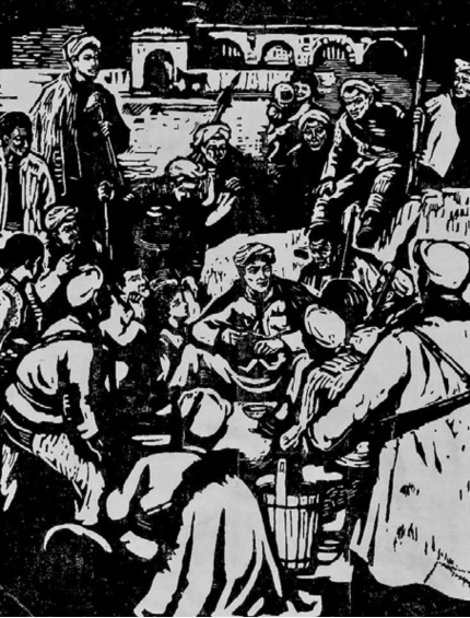 《刘志丹和赤卫队员》黑白木刻 古元