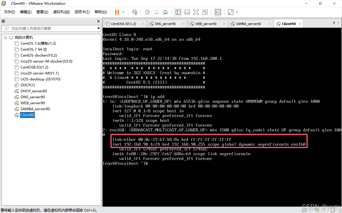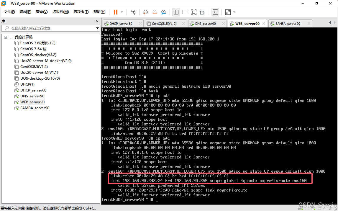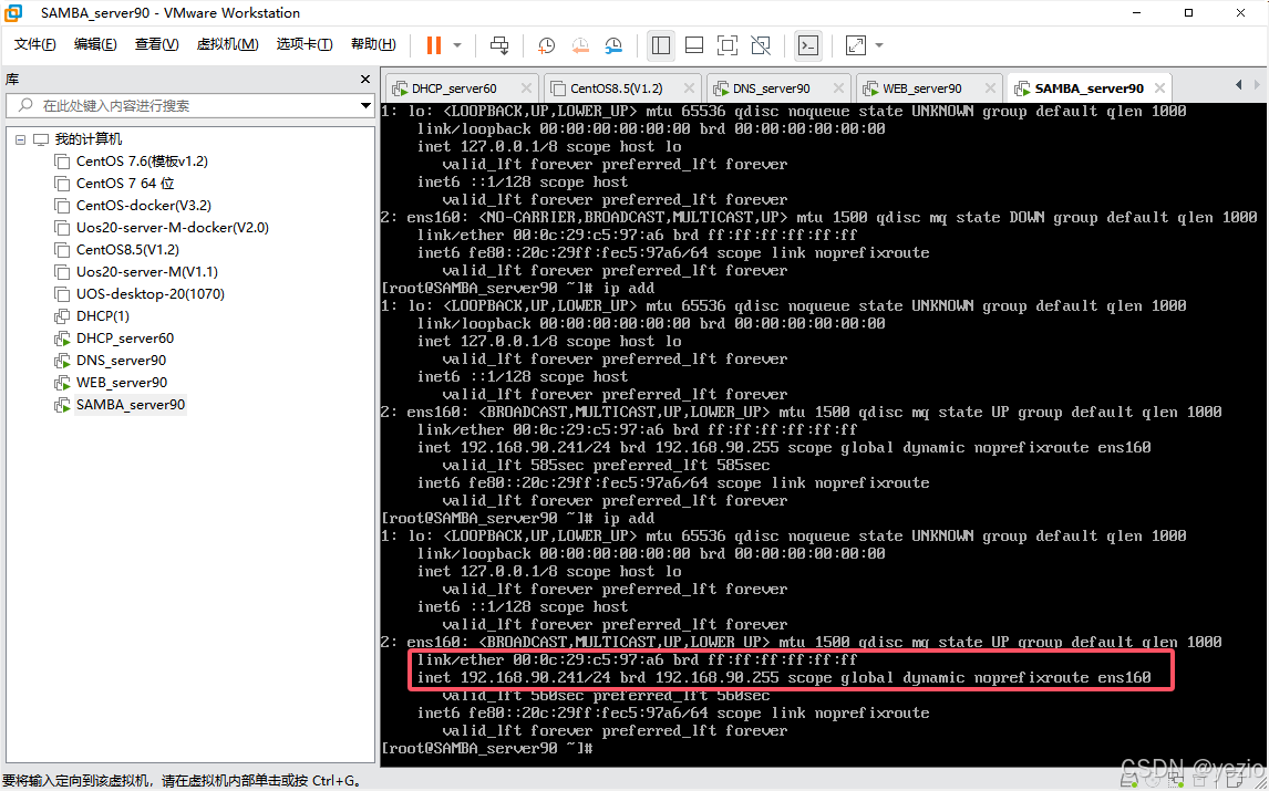 | SAMBA服务器 | SAMBA_server+学号 | 自动获取(保留地址) | 00:0c:29:c5:97:a6 |