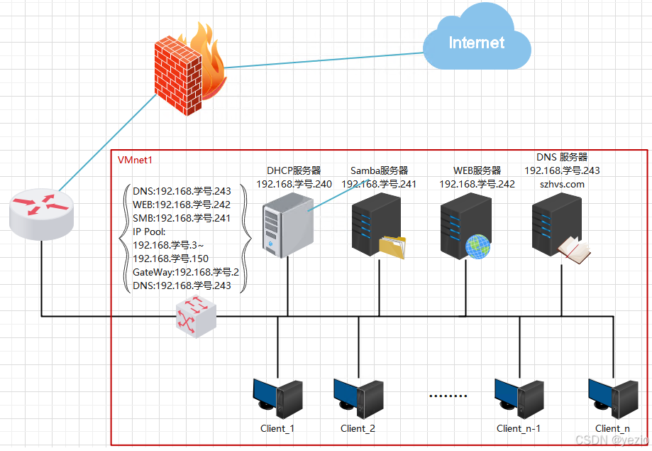 | Client客户机 | Client+学号 | 自动获取 | 00:0c:29:c5:97:a6 |