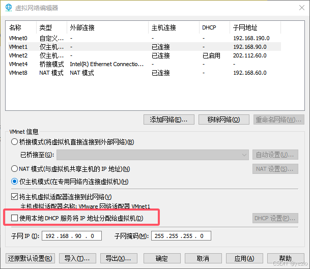2、配置虚拟网络编辑器(使用Vmnet1网段)