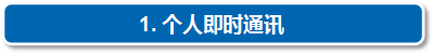 个人即时通讯是面对单个用户的网络沟通服务工具,以此来实现文字、语音、视频及文件的交流。如:Facebook、微信、QQ、MSN等都属于此类范畴。