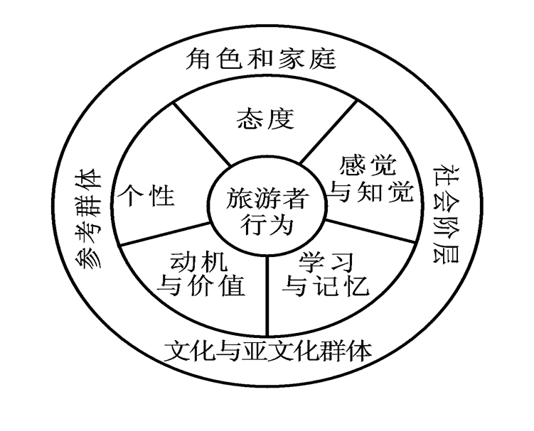 个人旅游行为不仅受到个体因素(如感觉、知觉、动机、人格、态度、情绪情感等)的影响,而且还受到其所处的社会文化环境因素(如风俗习惯、政治、经济、社会地位等)的影响。