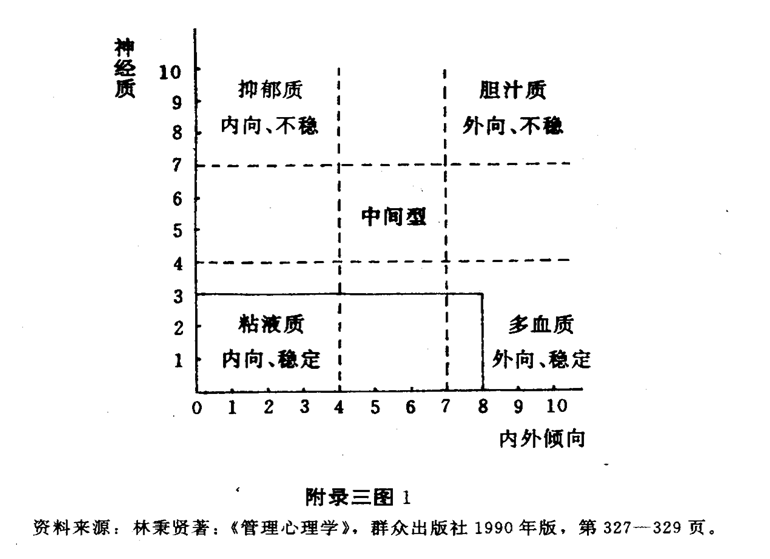 相交处便是你的个性类型。如某人前10题为 8分、后10题为3分,即表示此人个性外向、稳定,属多血质型。