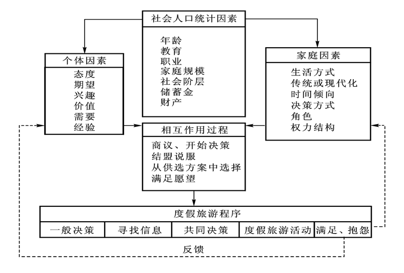 家庭旅游决策(Family Tourism Decision)与其他决策一样,是一个包括从内在的心理活动到外显行为的连续体,可以划分为一系列相关的阶段或步骤。