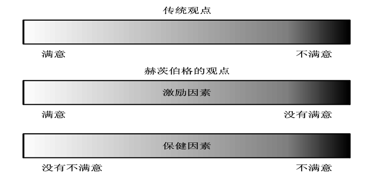 摒弃了传统的二元论,将“满意,不满意”看作是一个连续谱,认为两极端之间存在中间状态,使得研究更细致,更具有操作性。针对性地提出了保健、激励两类不同的因素。