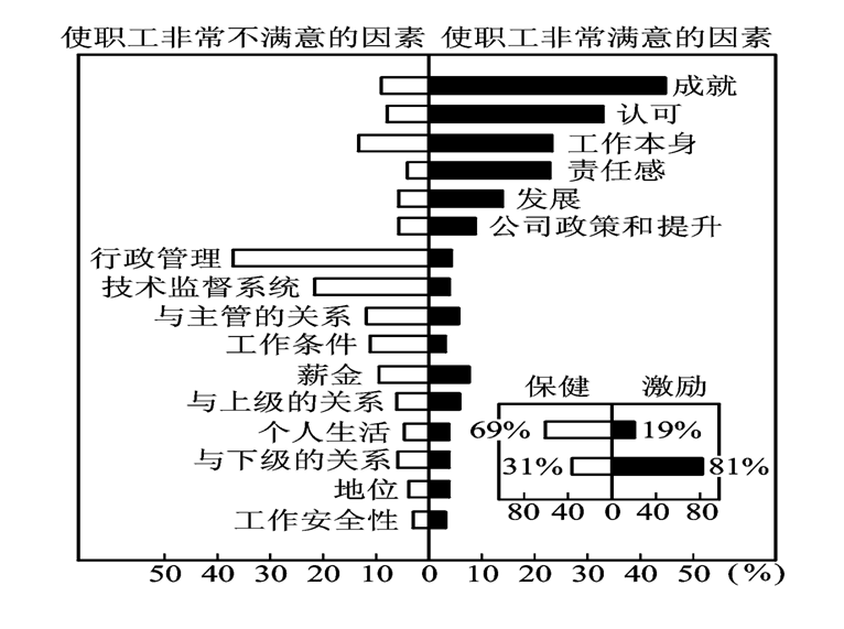 激励因素涉及工作的积极情感,如果得到保障,就能激励起员工的工作热情,从而提高积极性。反之,则会引起“没有不满意”。