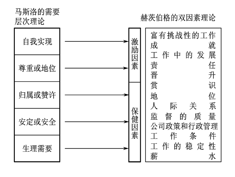 图11-6 马斯洛及赫兹伯格的激励理论对比