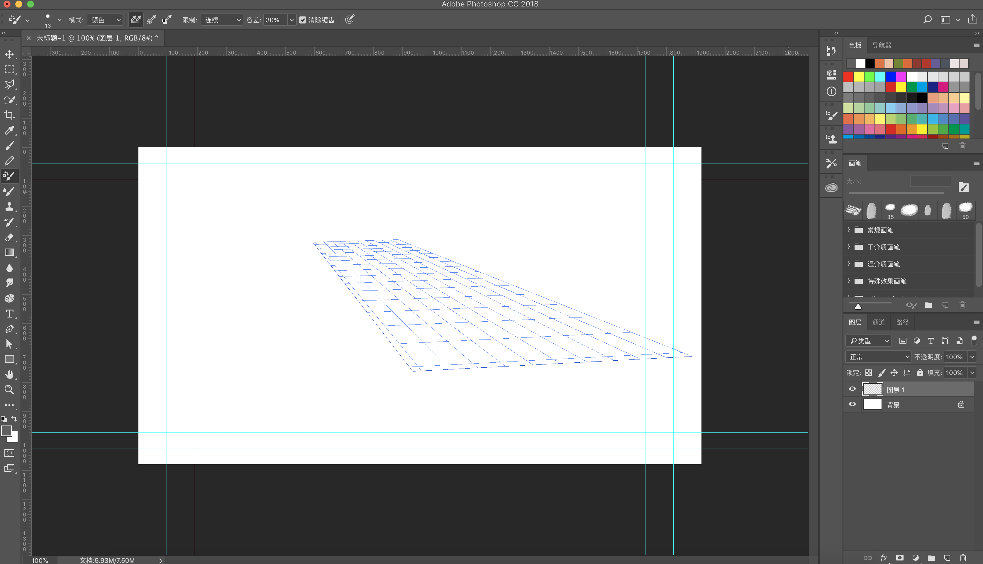 步骤6 绘制完成后,点击【确定】按钮。回到工作界面,看到在图层1上形成了一个透视网格图。