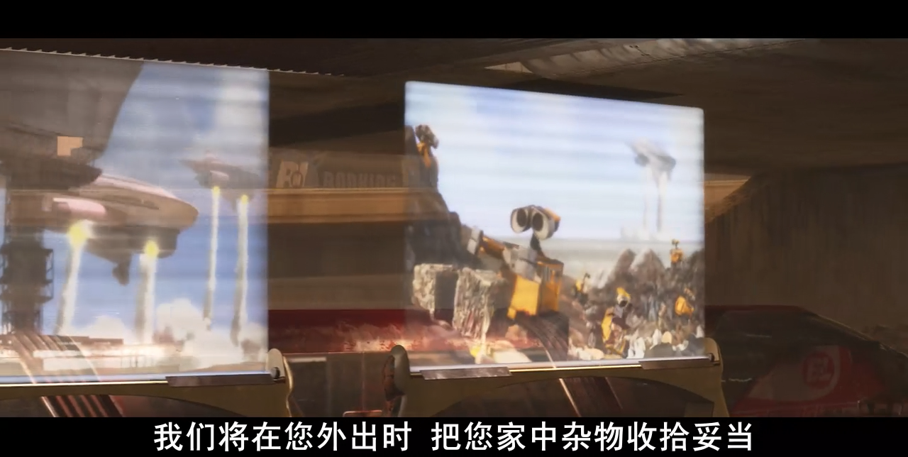 角度代表了创作者主观意愿的表达。所以此时关注点就不再是瓦力本身,而是它所处的环境。角度本身的选择带有很明显的创作者的主观意愿,希望通过角度来表达自己的理解、意愿、诉求等。