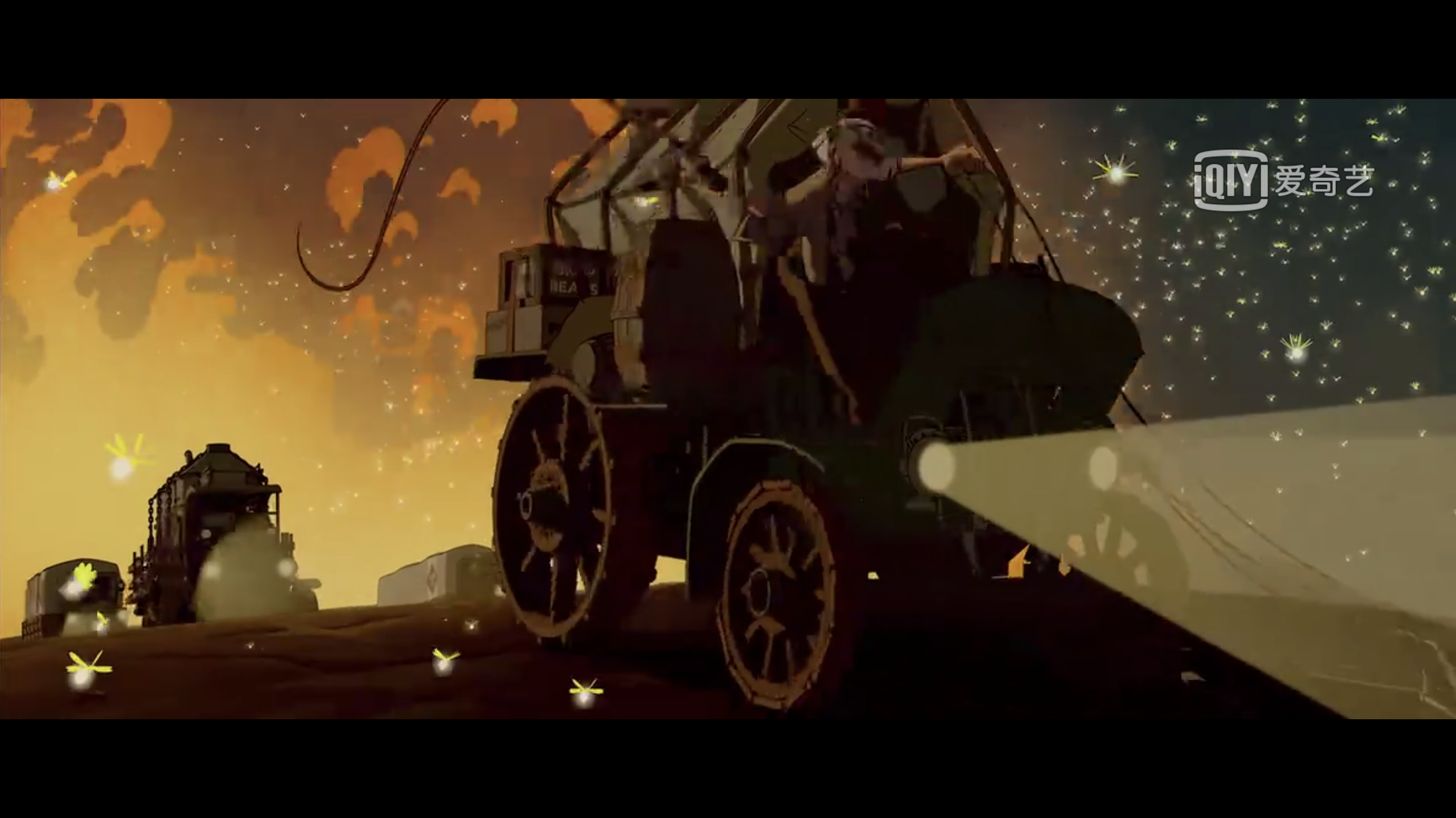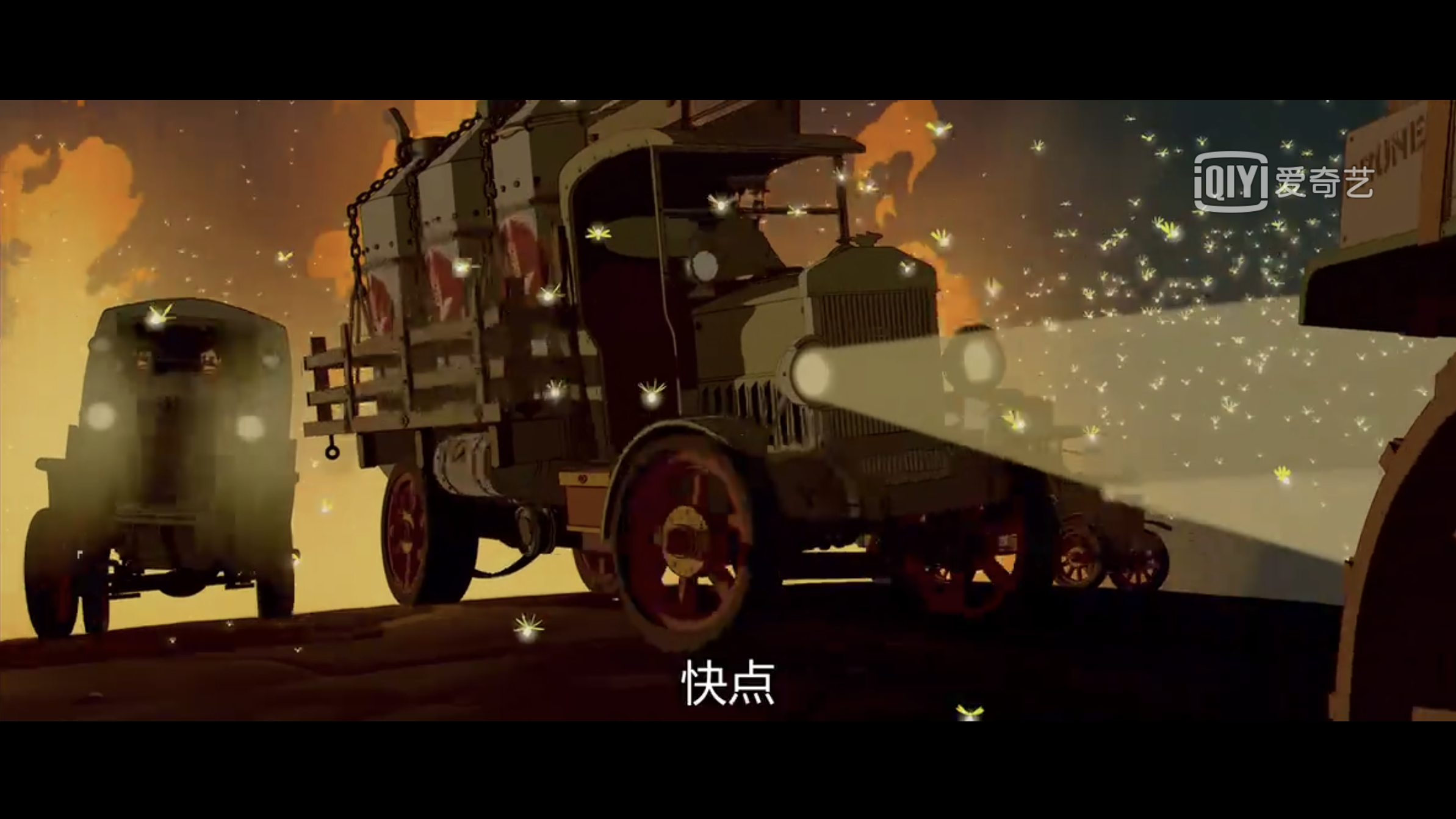 上图所示,选中了斜侧角度拍摄,可以很清楚地看到背景的火海。而如果我们不选择这个角度拍摄,而选择正面视角拍摄,可能不能有效理解车辆倾斜的原因。而斜侧角度却可以让观众理解车辆快要倾覆的原因,是因为背后的火焰和爆破。所以实际上我们在选中角度的时候,也是在选中一种关系,我们希望在一个画面内部能够形成被摄对象与被摄对象之间的勾连。进而由勾连所产生的叙事内容的表达。