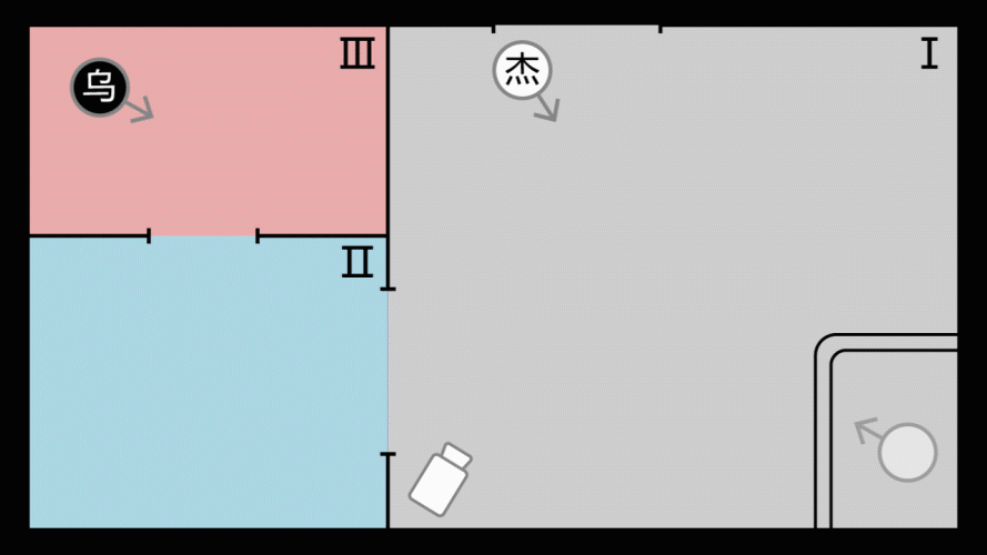 这是一个恐怖片,一家三口在严冬时期为度假村看守房屋而遇到了鬼怪。在这一段里,男主角杰克第一次在度假村见到了经历乌尔曼的时候,共有三个空间。