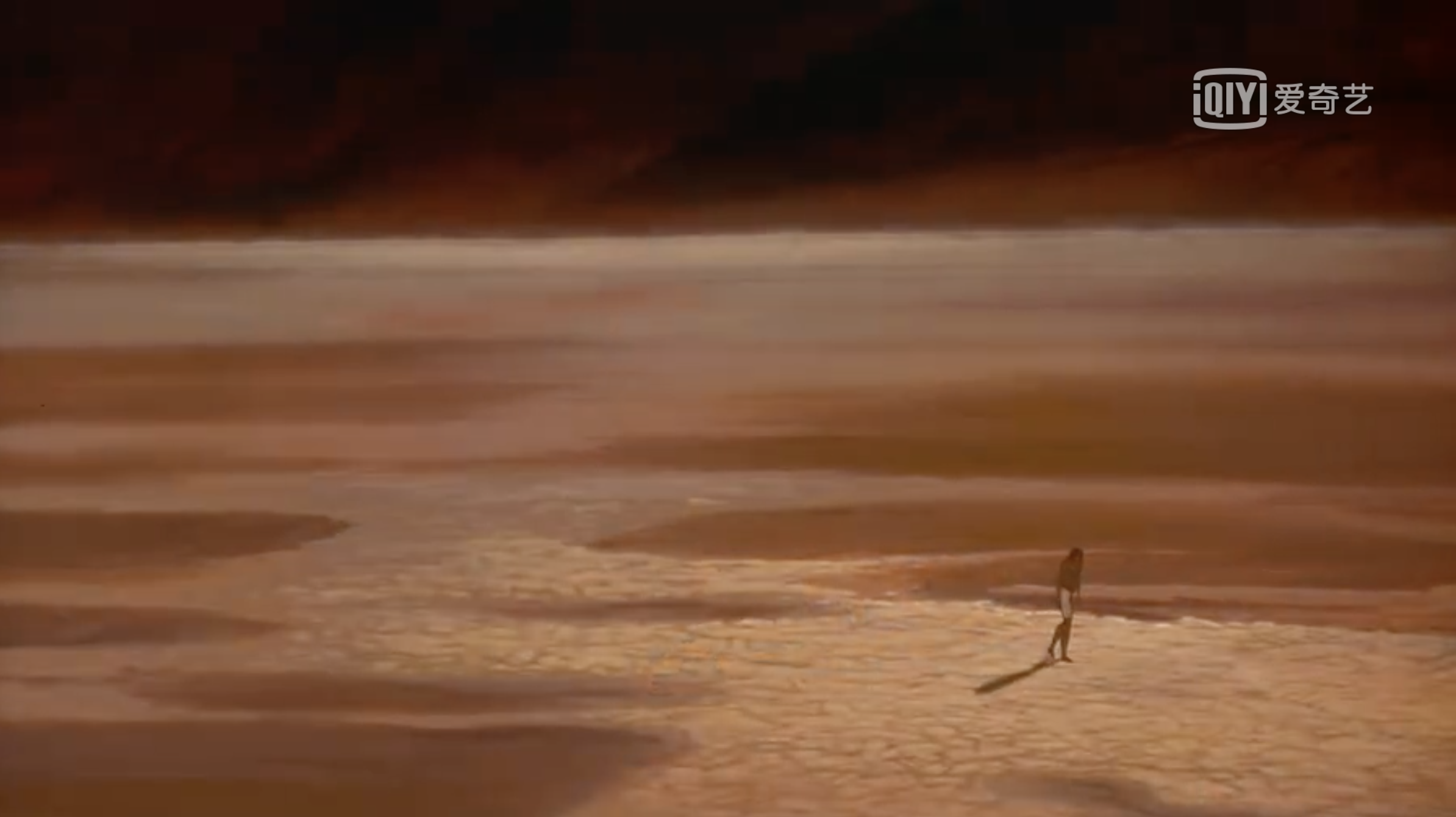 这张画面表现的是摩西出走的情节,但是并没有把摩西当做画面内容的主要表达,因为他只是处于画面的右下角,而且所占面积很小。而整个画面大面积都是廖无人烟的沙漠背景。所以画面真正想要表达的并不是摩西的形象,而是他的情绪:绝望、无助、迷茫、矛盾等情绪。所以背景是情绪塑造的重要组成部分。