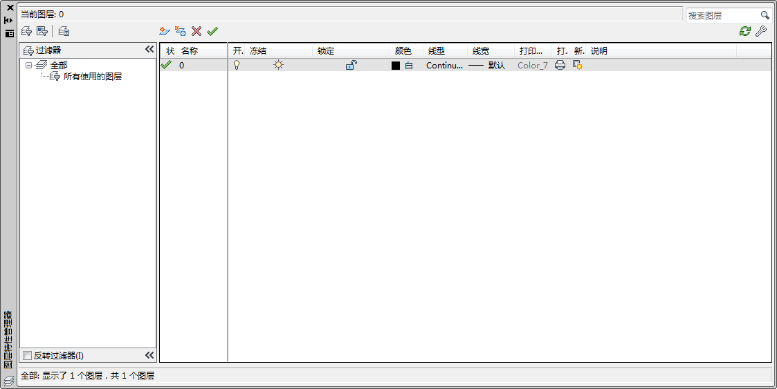 图层是AutoCAD 的重要功能之一,它是绘制图形的基础空间,利用它可方便地实现对图形的分层管理。 使用图层有两大优势:既可以通过改变图层的属性,统一调整该图层上所有对象的线型与颜色等;又可以利用图层的操作,统一隐藏、冻结该图层上的所有图形对象,实现对每个图层的单独控制,以便于图形绘制。