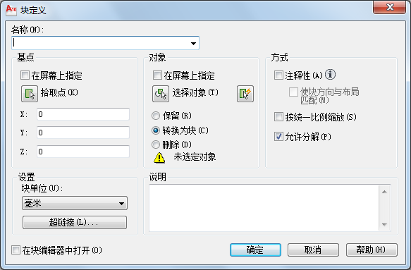 使用【块定义】对话框方式定义图块,通常有如下3种方式。