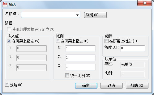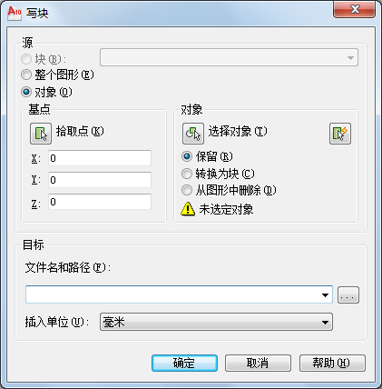 (2)用户可根据需要,在该对话框中选择图块源文件,指定要保存的块文件名与路径,确定其插人单位等。