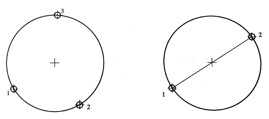 4、三点法。通过指定不在同一条直线上的3个点绘制圆形;
