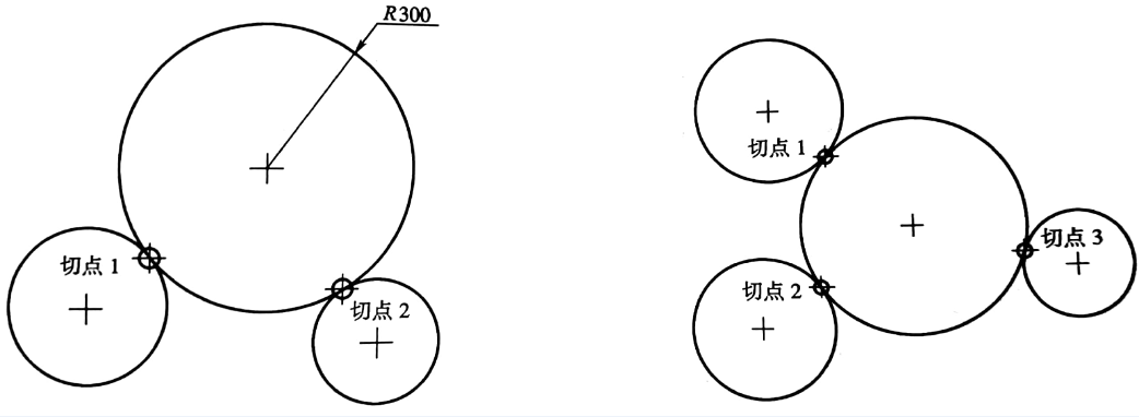 5、切线半径法。通过已知两个对象的切点以及要绘制圆的半径值3个要素绘制圆形;