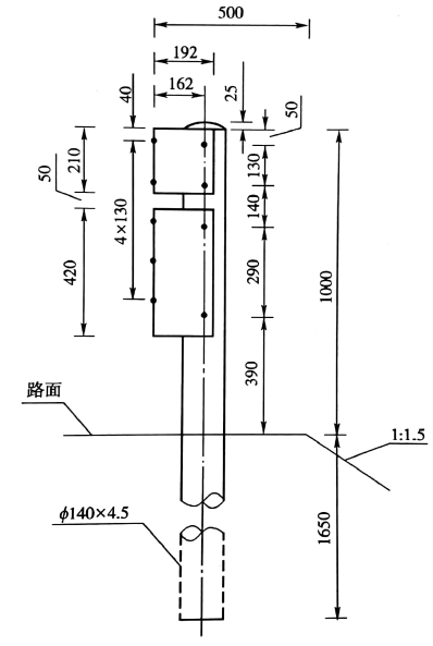 实例2:根据规范要求,绘制路侧B级缆索护栏中间立柱的构造图。