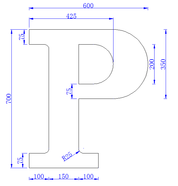 实例1:运用圆弧和直线工具绘制“停车位标志”P字图。