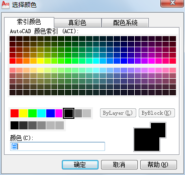 (1)在【图层特性管理器】对话框中,单击【颜色】列表中对应的图标,系统将弹出【选择颜色】的对话框,如图所示。