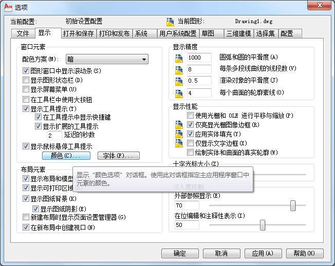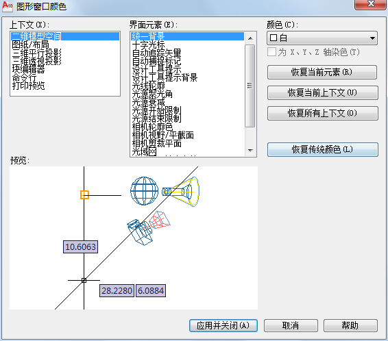 在默认情况下,AutoCAD2010绘图区的颜色为黑色背景、白色光标。在实际绘图中,用户可根据需要通过【选项】对话框对其进行修改或设置,具体方法如下。