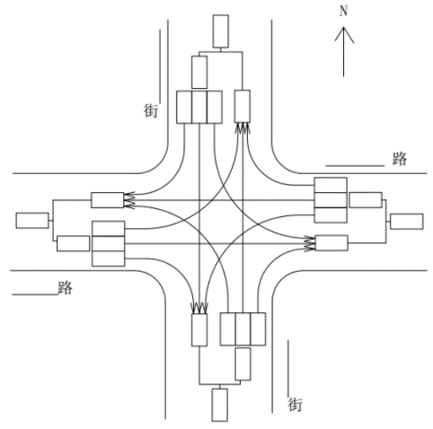 对于多路相交的交叉口或畸形交叉口,按照正常的观测方法一般难以测得车辆流向,因此最好用牌照法测定各进口道进入交叉口的车型及牌照号码,然后编制程序,用计算机算出各种车型的车辆通往各方向的流量。
