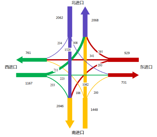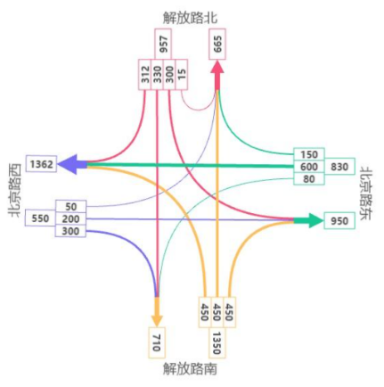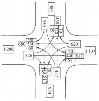典型案例之1-《交通工程学》-高峰小时流向流量图