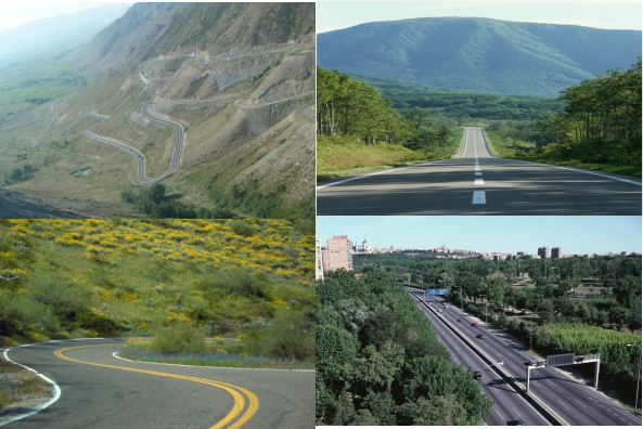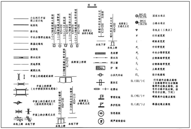 公路是主要承受汽车荷载反复作用的带状工程建筑物,路线较长,沿线构造物多。公路路线工程图包括路线平面图,路线纵断面图,路基、路面横断面图。