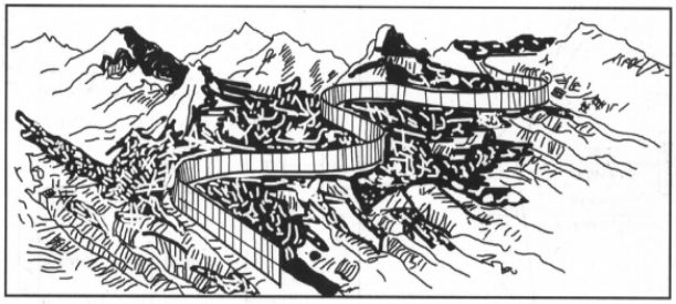 1、此条路线的大致走向是什么样的,位于什么样的地形中? |