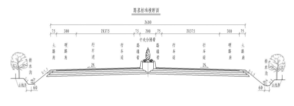 ②双幅式:由中间一条分隔带或绿化带将车行道分为单向行驶的两条车行道的断面形式。该断面形式可避免对向行驶车辆的干扰,但机非车辆仍混合行驶。对单幅式或双幅式道路,如果车行道较宽,可划出分道线,将机动车和非机动车分道行驶。