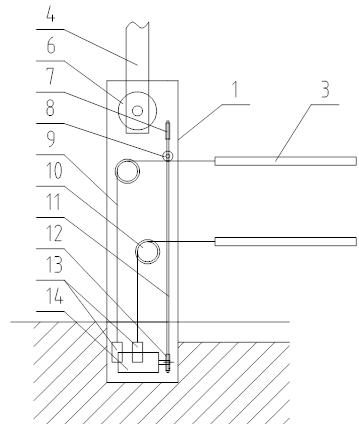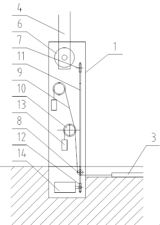 电动机14的安装位置低于地槽4的槽底,压线导轮8可随链条11下移至槽底平面下。