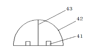 所述报警灯包括LED灯41、灯罩42和红色遮光板43;所述LED灯41设置在灯罩42内的底部;所述红色遮光板43竖向设置在灯罩42内的中部;所述灯罩底部与护栏主体1固连。