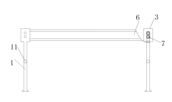 然而,现有的限高架存在一定的缺点。当超过限高的车辆与限高架相撞时,因为限高架本身没有缓冲装置,会造成车辆与限高架两方面的损伤。当车速过快时还有可能发生严重的事故,危害人身安全。综上所述,有待发明一种带有缓冲装功能的限高架。