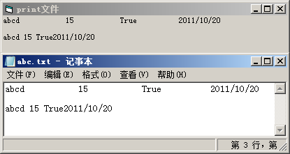 程序运行后,在窗体上显示和文件abc.txt中的内容如下图所示。