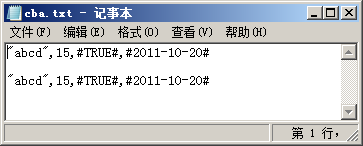 程序运行后,文件cba.txt中的内容如下图所示。在使用write语句写文件时,表达式之间用逗号或分号做分隔符作用是一样的。