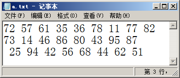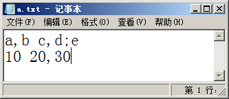 例如:数据文件d:\a.txt中内容如下图所示。