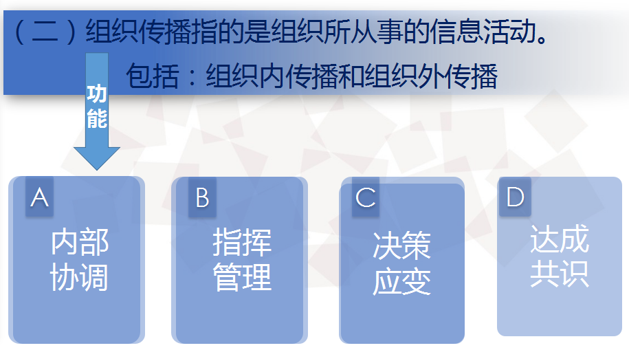 信息输出,主要介绍组织体有目的、有计划地开展的信息输出活动,即组织的宣传活动。主要包括: