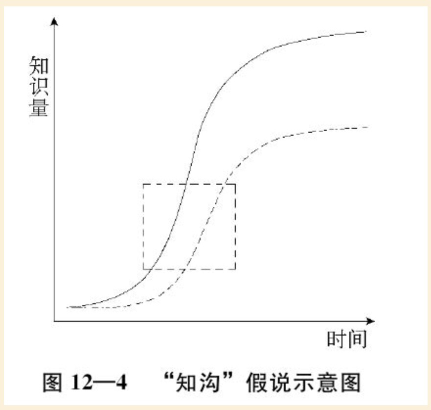 随着时间的流逝,获得更多信息的群体和获得更少信息的群体之间的差异会日益增长,即他们之间的知识鸿沟会变得越来越宽。