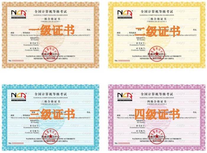 一级、二级、三级 、四级证书样本如下所示: